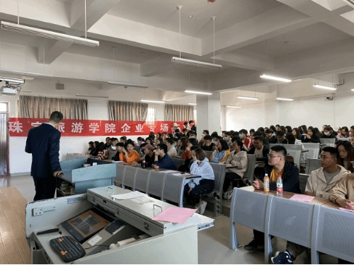 宣讲会中,德诚珠宝集团以视频、PPT、面对面交流等方式对公司发展、企业文化、经营理、人才需求及培养模式等方面向同学们详细介绍了该公司对人才的需求,并向大家分享了他的工作经历。通过公司负责人的讲解,同学们对企业有了清晰的认识,有很大的启迪和收获。最后,宣讲人对同学提出的问题进行答疑解惑。