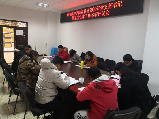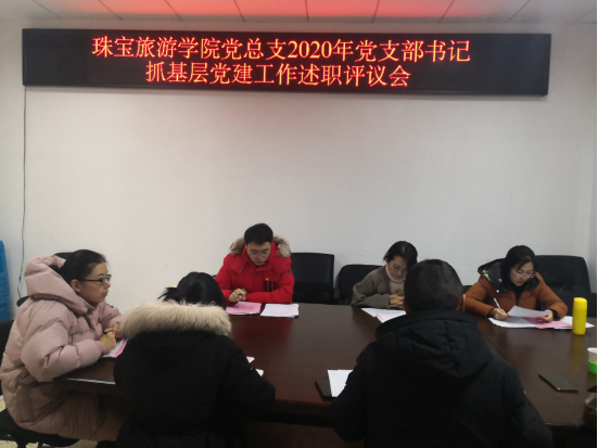 2020年12月22日金年会诚信信誉至上党总支在勘物楼A311进行了2020年党支部书记党建工作述职评议会。党总支书记、学校联系领导、全体党支部委员和教师学生代表出席了本次会议。会议上宝石党支部书记李继红、旅游党支部书记陈畅分别进行了述职汇报,汇报就2020年党建工作取得的成果、存在的问题和今后改进的措施做了详细的陈述。党总支书记杨飞和副书记张军红进行了点评。最后联系校领导刘勇书记向支部书记提出了三点要求:首先思想认识要到位,其次党建工作要到位,要充分发挥宝石党支部示范引领作用;最后党建引领队伍要到位,做好特色专业建设,做事具有前瞻性和时刻保持风险意识。会后,金年会诚信信誉至上党支部将按照上级要求认真整改,“照镜子正衣冠”深刻对照检查切实加强整改。