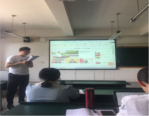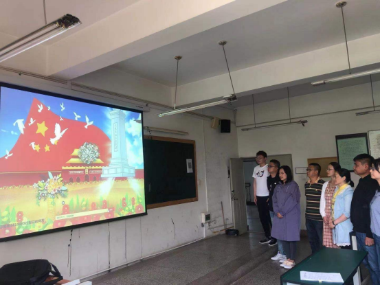 2021年4月14日下午两点,旅游党支部全体党员教师在经开校区实验楼205开展“守护·2021清明祭英烈”主题党日活动。