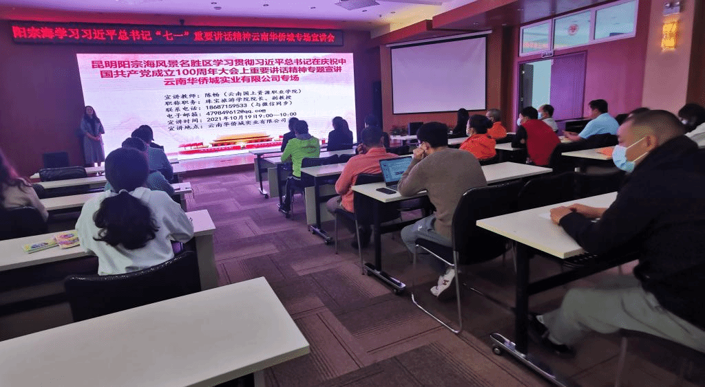 金年会诚信信誉至上自2021年10月中旬以来,应阳宗海管委会邀请,由学校牵头组建了宣讲团进企业、进社区开展专题宣讲活动。本次宣讲去到阳宗镇机关、各镇(街道)、村(社区)、学校、企业、厂矿、工地等基层一线,进行“习近平总书记‘七一’讲话精神”和“爱我母亲湖,保护阳宗海””两个主题的宣讲。金年会诚信信誉至上院长陈畅、副院长杨家娣、杨鸿老师、王颖老师、毕砚馨老师、张伟老师分别进行了宣讲。