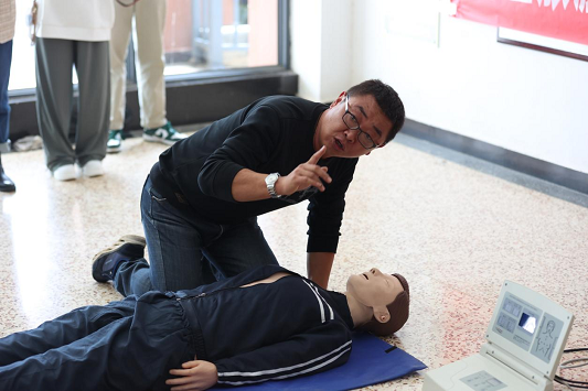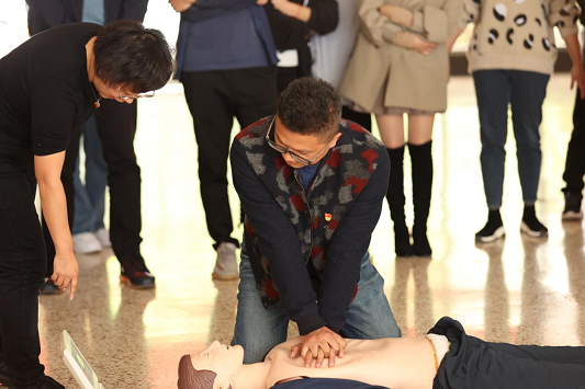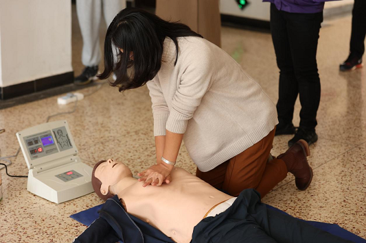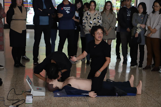 培训采用理论授课及实践操作相结合的方式进行。培训中,冯溪阳老师针对不同人群的抢救方法做了细致的讲解,深入浅出阐述了心肺复苏的理论知识和操作要点,讲解完初始急救步骤后,通过人体模型为大家演示了心脏复苏抢救的要点,包括判断是否丧失意识、判断有无自主呼吸、判断有无脉搏、进行胸外心脏按压、清理口腔异物、开放气道、人工呼吸等环节。接着又给大家演示胸部按压技术、人工呼吸法等,她边演示边阐述施救过程中常见的误区,以及操作中可能出现的并发症。讲解结束之后,学院师生积极参与到模拟演练中,用人体模型现场操作。