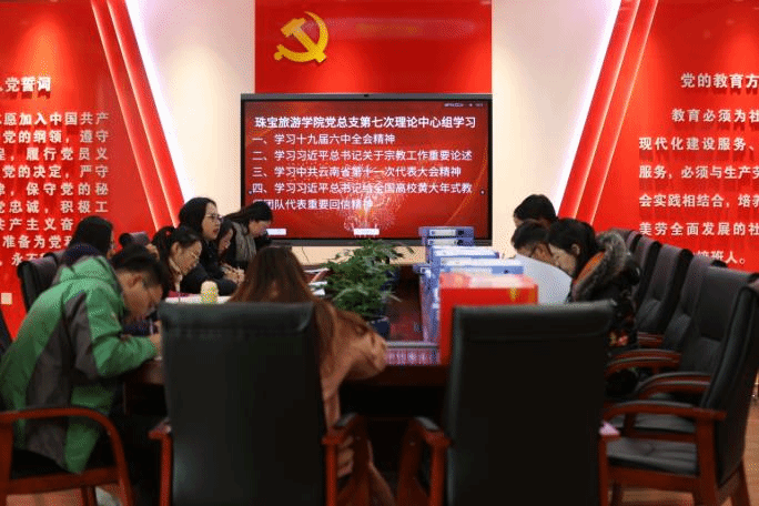 2021年12月3日金年会诚信信誉至上党总支于勘物楼A303党员活动室开展第七次理论学习中心组学习,金年会诚信信誉至上党总支书记张颖、副院长杨家娣、宝石党支部书记李继红、旅游党支部副书记王颖、组织员刘迪老师、总支宣传委员毕砚馨、孙杰老师、杨勇老师、吕明老师,王娅力老师、李欢老师、刘婉老师、阮耀华老师参加。