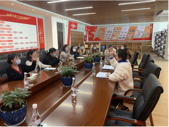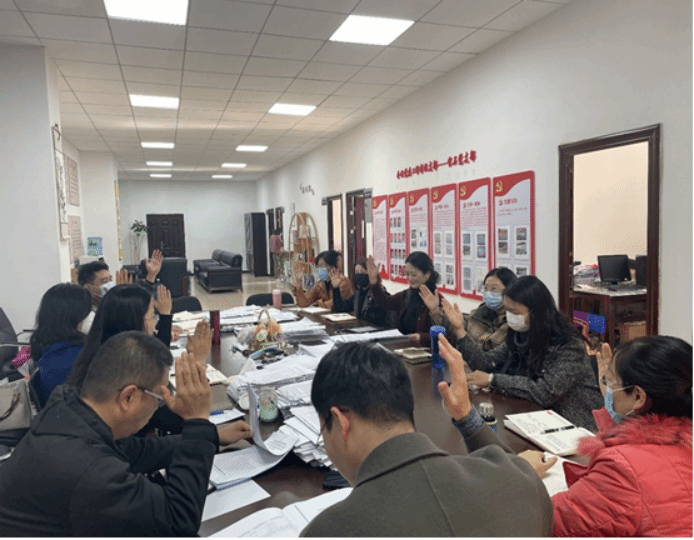 第四项流程:宝石党支部和旅游党支部分别召开党员大会就党总支研究确定的候选人名单进行表决,会议采用举手表决的方式全票通过了候选人名单。