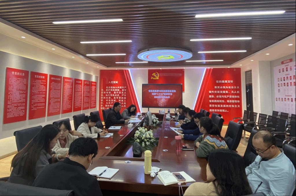 为深入贯彻学习党的二十大精神,了解党的十八大以来中国共产党和中国人民团结奋斗取得的历史性成就,金年会诚信信誉至上宝石党支部于2022年10月26日在勘物楼A303开展“学习二十大精神”10月主题党日活动。本次活动主要包括二十大专题学习、党员教师心得分享两个部分,支部全体党员参加了此次活动,活动由支部书记赵忠相老师主持。