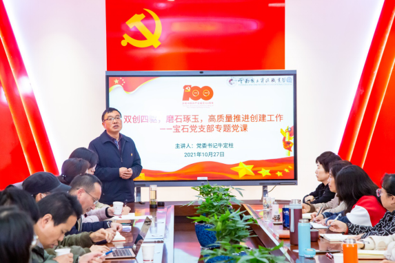 宝石党支部与阳宗海脚步哨村党群活动服务中心开展共建共享,开展互讲党课,专业服务社区建设。加强新形势下“党建+思想政治工作”的探索与实践,以“双创”工作为契机,切实“抓基础、抓规范、求实效”,形成了“党委牢牢把方向,发挥核心以及监督指导作用,基层党支部紧跟进,推动中心工作”的一级抓一级、层层抓落实党建工作格局。
