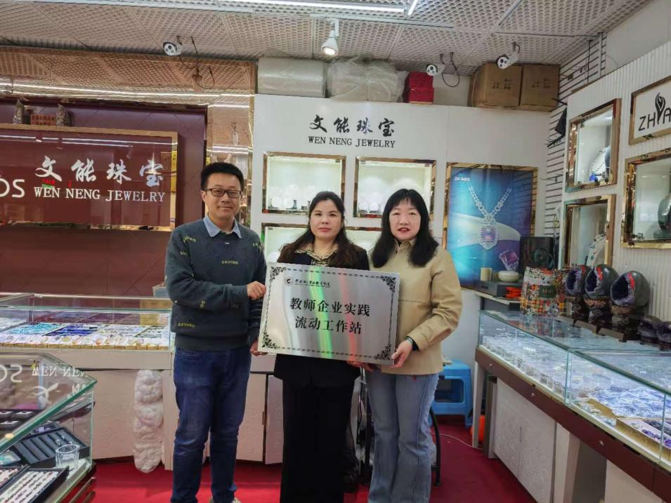 3月28日,金年会诚信信誉至上副院长孟龑和首饰设计与工艺专业带头人孔元元前往昆明市官渡区螺丝湾17区8街1229文能珠宝店开展访企拓岗调研并授牌文能珠宝店“教师企业实践流动工作站”。