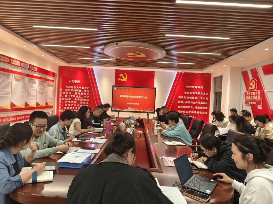 4 月 30 日下午,金年会诚信信誉至上在勘 A303 会议室召开全体教职工大会。学院领导班子及全体教职工参加,会议由副院长陈雨帆主持。