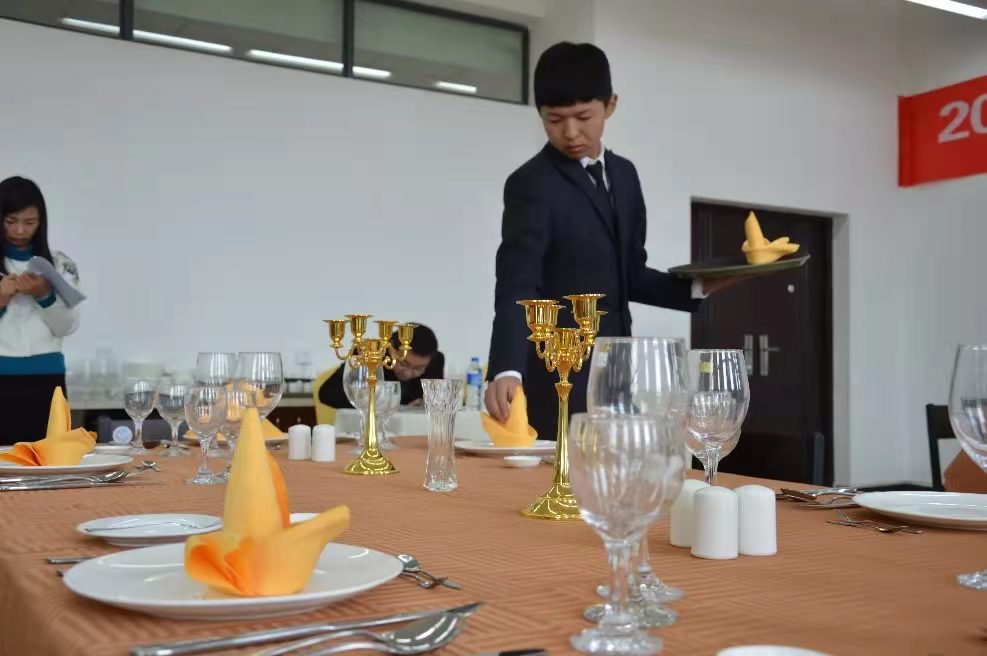 2.可全面系统的开展西餐服务技能实训,如托盘、铺设台布台裙、摆台、餐巾折花、酒水服务、餐饮服务等,以及用餐礼仪及会议服务礼仪的训练。