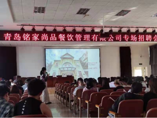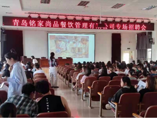 就业工作是金年会工作中的头等大事,为落实党中央、国务院“稳就业”“保就业”决策部署,全力抓好金年会就业工作,帮助学生顺利择业、理想就业。院领导高度重视,聚焦“领导主动走出去,企业积极引进来”的方针,2021年5月11日下午,青岛铭家尚品餐饮管理有限公司在经开校区图科楼报告厅举行了专场招聘会,旅游管理、酒店管理、导游、高铁和休闲服务与管理专业学生参加了本次招聘会。