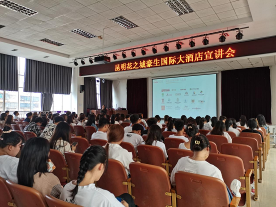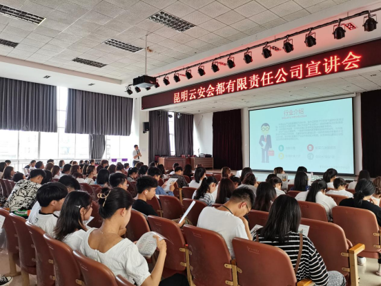 本次宣讲会共邀请了三家企业,分别为昆明花之城豪生国际大酒店、昆明云安会都有限责任公司、上海欢乐谷。宣讲会现场气氛活跃,各企业负责人通过视频宣传、PPT展示以及面对面交流的方式,介绍公司的概况、发展空间、工作环境、培训机制、企业文化等同学们关心的问题进行了详细的介绍、并且对金年会学生职业道德养成、学习能力提升、实践技能培训等提出了良好的建议。
