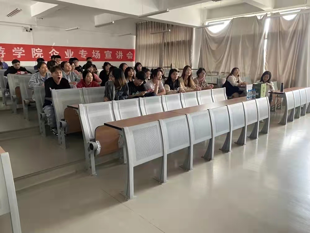 各家企业负责人先后就企业背景、企业团队、企业文化、工资待遇、福利奖金、以及企业发展前景和岗位上升空间进行全面的讲解。每一位企业负责人一边讲解,一边详细解答同学们提出的疑问,不断与在场同学展开互动,消除同学们的后顾之忧。深圳春航商贸有限公司由于客观原因未能到场,因此采用线上会议的方式来给同学们进行讲解和面试。