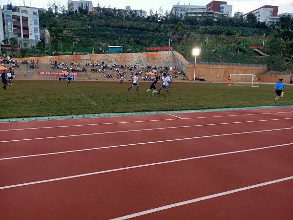 绿茵点亮梦想,激情舞动青春。2020年6月21日19点珠宝玉石学院和建筑工程学院在腾龙足球场首场足球比赛开始了。随着裁判的一声哨响,比赛开始了。在双方拉拉队的加油声中,在双方球队队员的加油打气声中,比赛很快就进入了状态。比赛中,大家激情如火,奋勇争先,场边的观众也为场上的队员大声的打气加油助威,刚开始各组都不分上下,建工学院虽然领先了两球,但珠宝学院的学子也奋起直追。比赛进行了半个小时后,进行中场休息,拉拉队们开始了精彩的表演以及为队员们的加油鼓励。比赛正进行的如火如荼,但没有一个人说累,大家都在沉浸在紧张的氛围中在这短短的十几分钟的休息时间,双方队长还在进行赛前战术安排和人员调整问题。休息过后,双方又进行了后半场的激烈酣。比赛非常激烈,每个学院各有不一样的风采,珠宝玉石学院与建筑工程学院的运动员们,就像在草原上的一群脱缰的“黑马”,不断的奔跑,为自己的梦想而努力。建工学院以2:0的比分赢下珠宝学院。