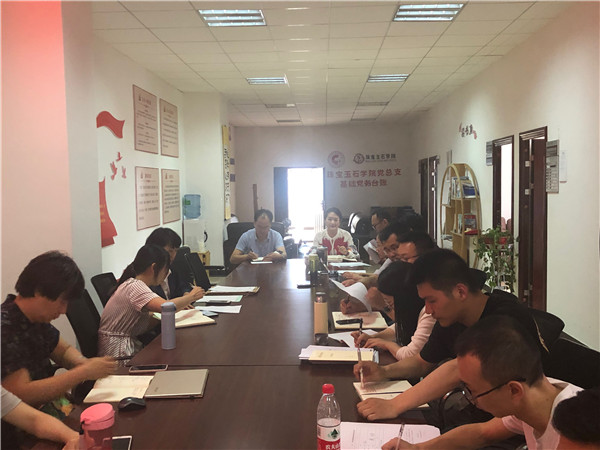 2019年5月24日下午,珠宝玉石学院2018-2019学年下学期第十三周学院部门例会在金年会jinnianhuicom阳宗海校区勘物学院办公室召开,珠宝玉石学院党总支书记陈畅、副院长刘德利、副院长汪朝飞及学院全体教师参加了此次会议。