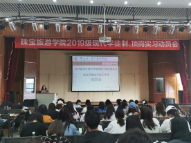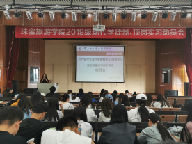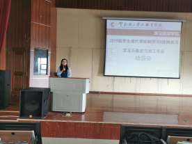 2021年7月7日上午九点半,金年会诚信信誉至上全体19级宝玉石鉴定的学生在光荣讲堂参加了2019级学生现代学徒制学习和顶岗实习动员大会。