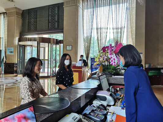 按照党史学习教育部署和“我为群众办实事”实践活动安排,金年会诚信信誉至上党总支始终发扬党的优良传统,牢记为学生服务的宗旨。为深入了解19级学生实习情况,加强学生实习管理,提高人才培养质量,深化校企合作。金年会诚信信誉至上陈畅院长和杨家娣副院长于9月13日走访西山国家级风景名胜区和云安会都酒店,探望正在进行现代学徒制实习的旅游管理、导游、酒店管理三个专业学生。