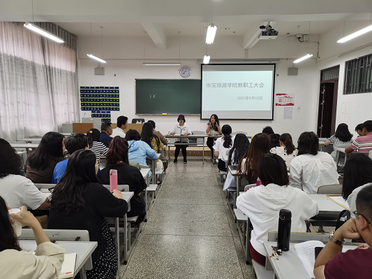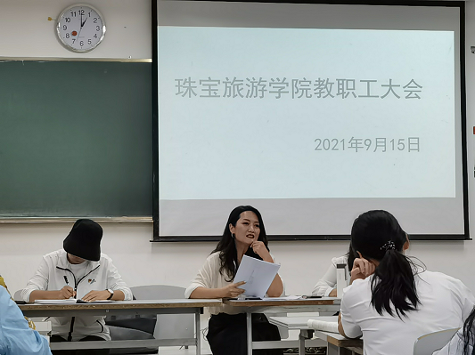 2021年9月15日星期三中午12:40分金年会诚信信誉至上全体教师在笃行楼201教室召开了教职工大会。本次大会共有三项流程。
