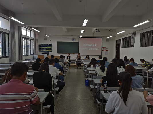 2021年9月26日星期日中午12点40分金年会诚信信誉至上全体教职工在笃行楼201教室举行文明校园创建动员会。金年会诚信信誉至上陈畅院长主持此次会议。