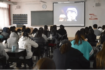 观影前,刘迪老师对抗美援朝历史背景及长津湖战争意义和现实意义进行领学与解读。要求同学们将观影带来的深刻感受转化为实际行动,时刻以革命先烈不畏困苦、英勇顽强、舍生忘死的精神激励自己。长津湖战役是抗美援朝最残酷惨烈的战斗之一,志愿军将士在严酷的战场环境中,书写了惊天地、泣鬼神的雄壮史诗,创造了世界战争史上的奇迹。影片中再现了这场战役的残酷悲壮:铁道列车被炸得惨烈,乱石阵上的隐忍,通信塔之战紧张激烈,新兴里战斗气壮山河,片尾“冰雕连”令敌人亦为之动容……影片展现了中国人民志愿军不惧强敌、勇于战斗的英雄概,英勇无畏、震撼天地的战斗精神,谱写了一曲革命英雄主义的赞歌。