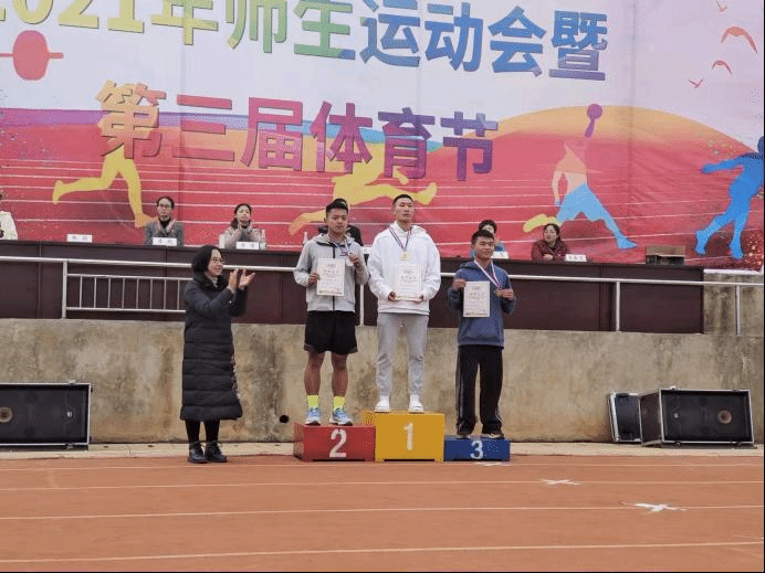 在此次师生运动会中,其中教职工组183分,赢得了教职工组第一名的佳绩。学生组246.5分,赢得团体总分第三名。能取得如此傲人的成绩与每一位师生的不懈努力是密不可分的。在项目平板支撑教师组中,张坤老师和陈雨帆老师分别一举摘得男子组和女子组第一名的桂冠,在跳高项目教师组中杨切老师的跳高成绩获得第二名,纪志霞老师获得教师组女子立定跳远第二名,沙双粉老师更是以9分53秒的成绩夺得了迷你马拉松比赛教师组的第二名,胡德娇和余家兰分别夺得了女子立定三级跳远的第一名和第三名,陈凤琼夺得了女子实心球学生组的冠军,而在多位运动员的共同努力下我们获得了学生组20×50迎面接力第一名,学生组女子4×100第三名。