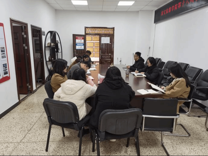 2021年12月14日星期二上午金年会诚信信誉至上在勘物楼A311会议室召开第十六周学生工作例会。会议由孙杰主持,党总支书记张颖和全体学工办辅导员参加。