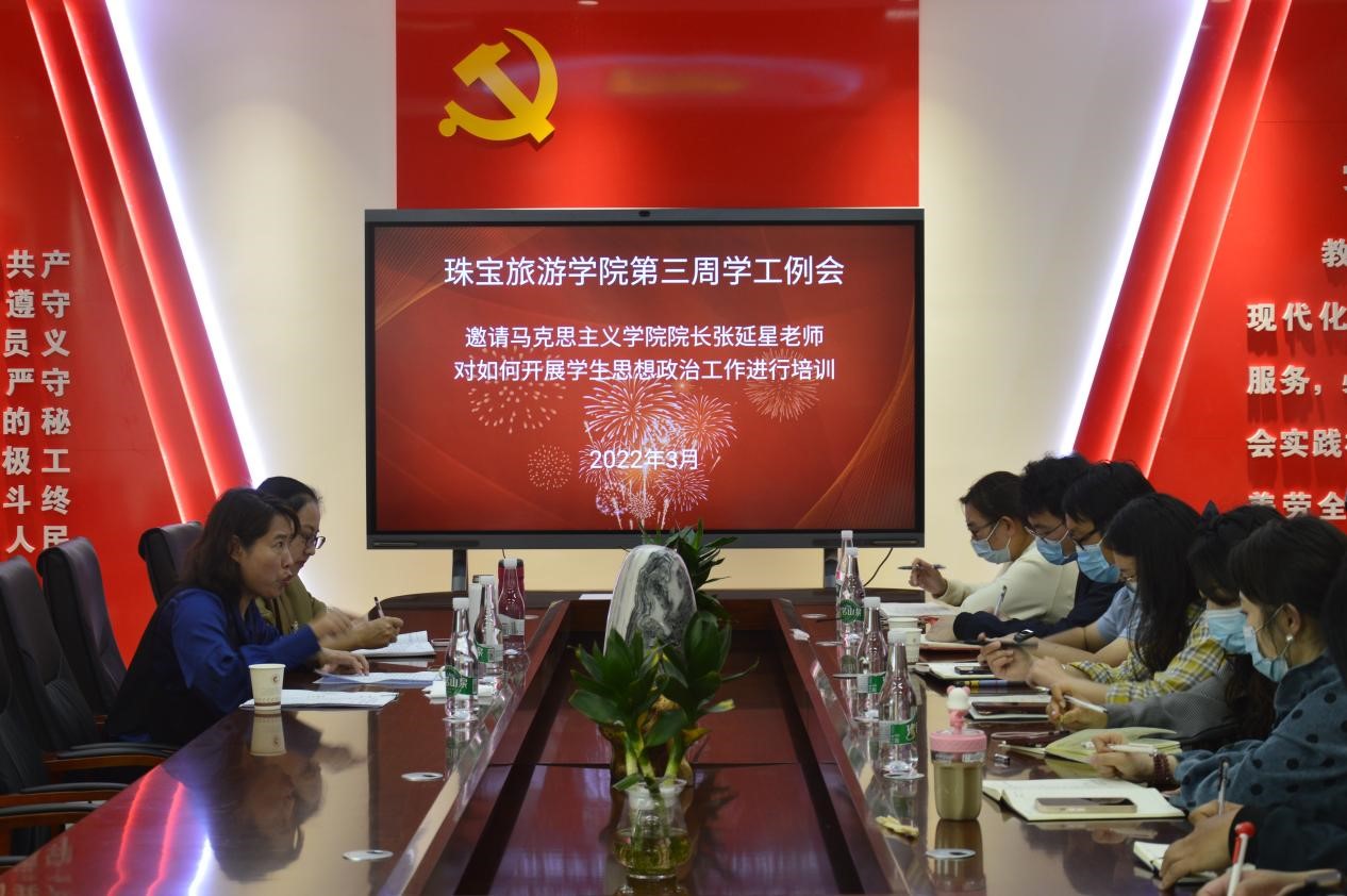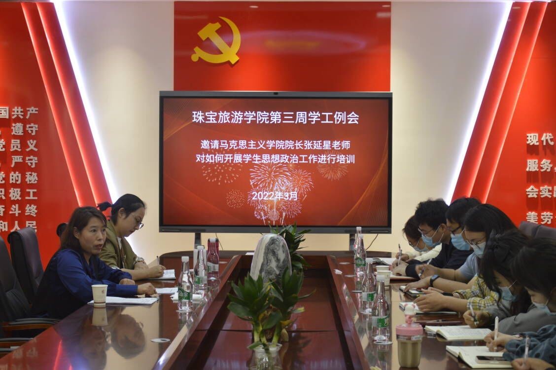 为进一步加强和改进金年会诚信信誉至上辅导员队伍建设,推动辅导员专业化、职业化进程。2022年3月15日下午两点,金年会诚信信誉至上特邀马克思主义学院院长张延星在勘物楼A303党员活动室对全体辅导员开展工作培训,本次培训以如何开展学生思想政治教育工作为主题,旨在全面提升辅导员立德树人水平。