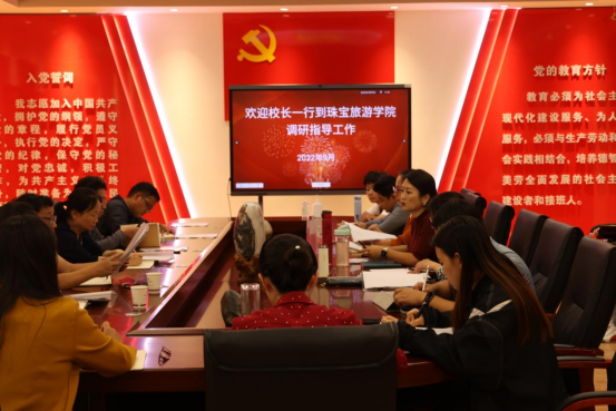 陈颖校长对宝旅学院目前“双高”建设给予了肯定,她表示通过“双高”建设看到了大家有思考、有行动、有成绩、有亮点。根据学院的工作汇报,陈颖校长提出两点要求:一是注意提质,以“双高”建设为抓手筑牢安全底线。二是要求教师加强学习研究与讨论,联合其他院校建立宝石类专业远程教研室。要求双高办联合各二级学院共同研究,明确标准,合力做好“双高”工作。陈颖校长结合学院特点给出明确的意见:一是要擦亮全国样板党支部金字招牌,持续发力。做好发掘优秀、先进和典型代表的工作。二是要充分发挥宝旅学院在美育教育方面的特色,成立“美育创新创业实践基地”,做大做强,力争成为学校工作的亮点和特色。面对师生开展美育相关教学及活动,将学生创新创业项目落到实处。三是要深化人才培养模式改革,支持酒店管理专业作为试点,先行探索,引入企业课程,推进校企深度合作。四是学院要继续发挥主办各类职业技能大赛的经验与优势,不断提升办赛质量,争取取得国家赛事主办权,全力展示学院的技能水平,争取更高的奖项。
