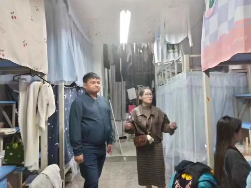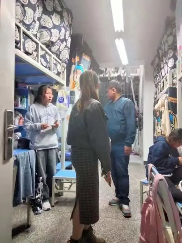 走访过程中,三位检查组老师对学生的思想状况、学习生活、宿舍安全等方面与同学们进行了细致的交流,同时强调在疫情防控常态化期间,要高度重视宿舍的安全和卫生,勤开窗通风,保持宿舍干净整洁,做好个人卫生防护,戴好口罩,坚持每日健康打卡并注意用电安全。