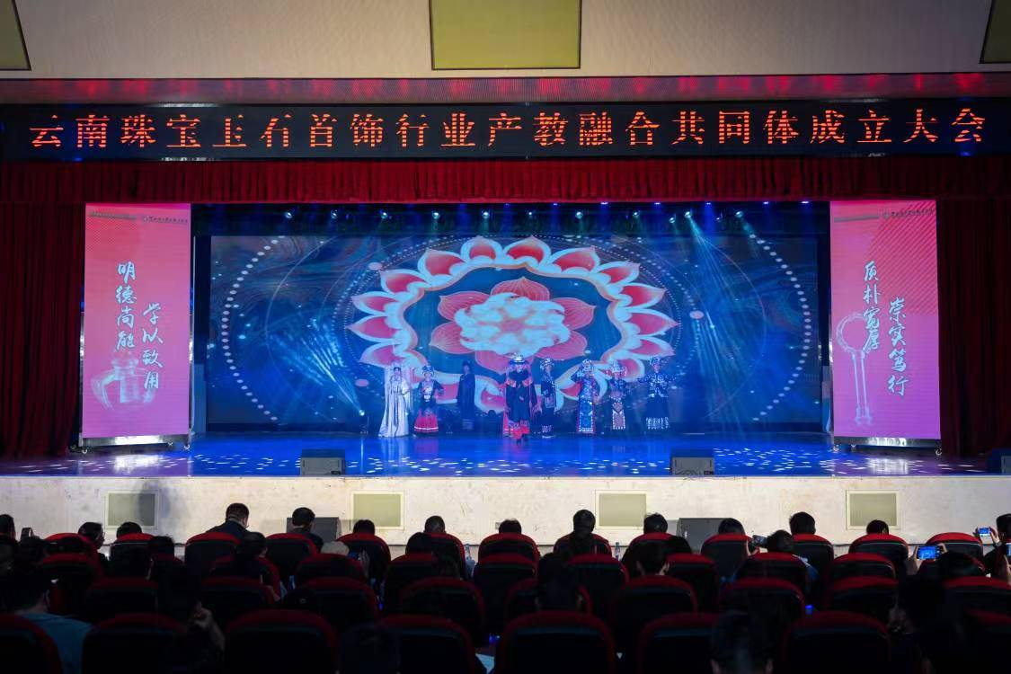 2023年4月10日,云南珠宝玉石首饰行业产教融合共同体成立大会在我校明礼堂召开。共同体指导单位云南省教育厅、牵头单位云南省珠宝玉石首饰行业协会、金年会jinnianhuicom和84家成员单位代表出席成立大会。学校党政领导班子成员、部分中层干部和师生代表参加会议。会议由副校长张云霞主持。