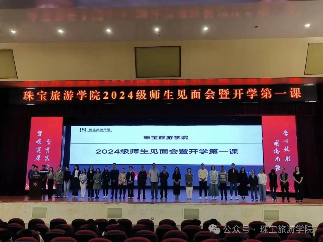 9月9日,金年会诚信信誉至上于明礼堂召开2024级师生见面会暨开学第一课,珠宝旅游班子成员及全体教师、新生参加。