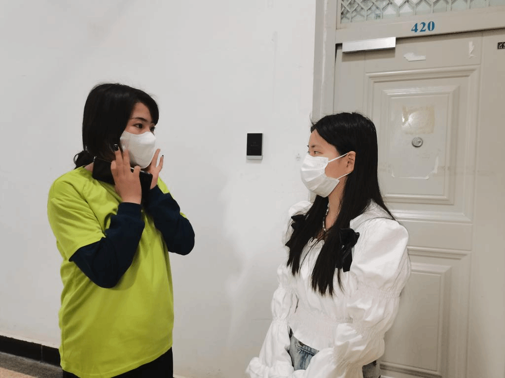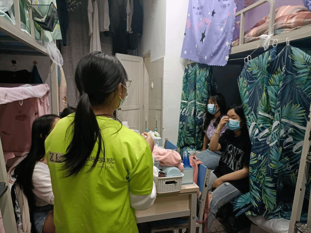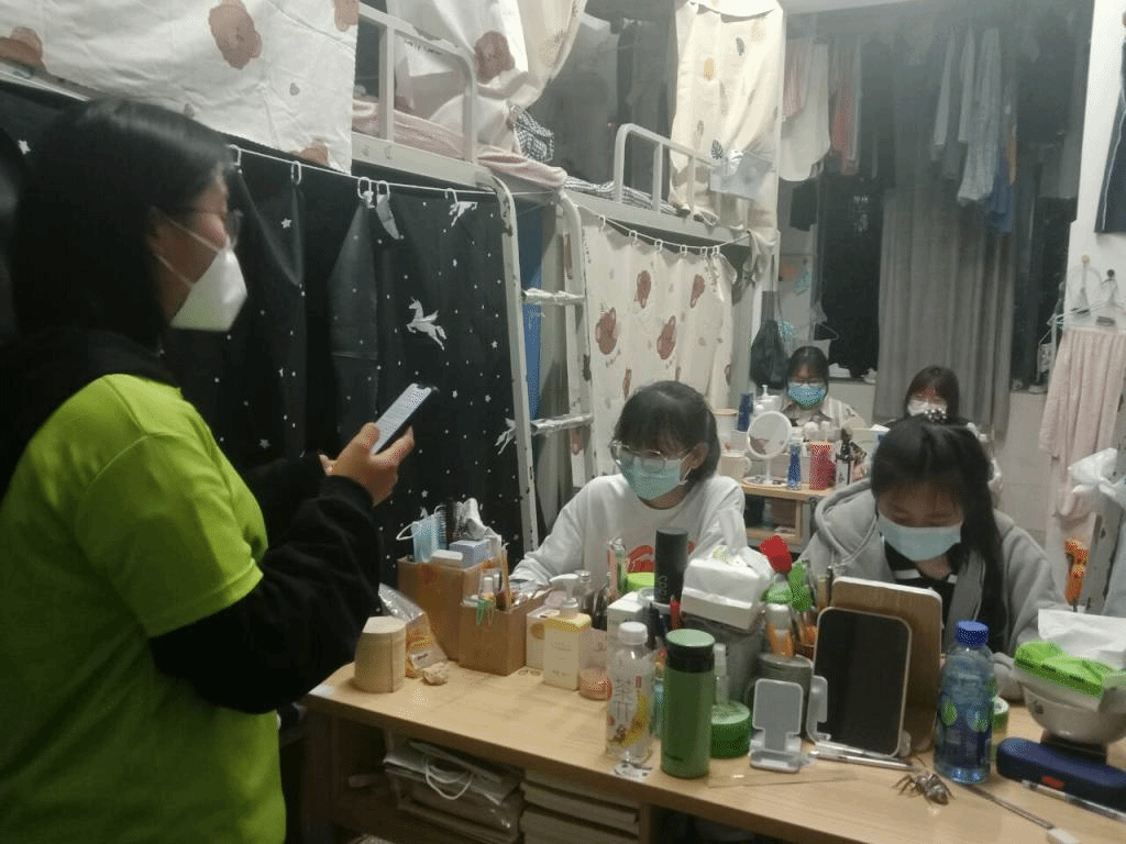 志愿者们深入学生宿舍,向同学们讲解“一日三报告”制度的重要性,希望同学们每日按时完成体温检测和健康报告;向同学们宣传疫情防护知识,希望同学们在校园内公共场合科学佩戴口罩,减少不必要的流动,勤洗手,勤通风,做好个人防护。