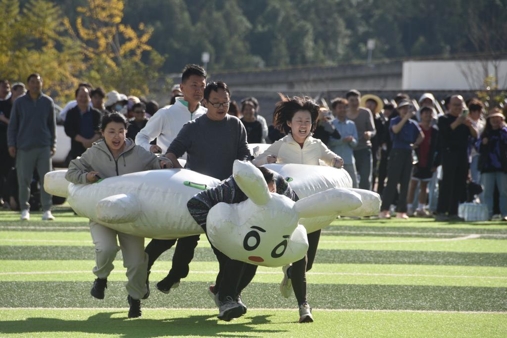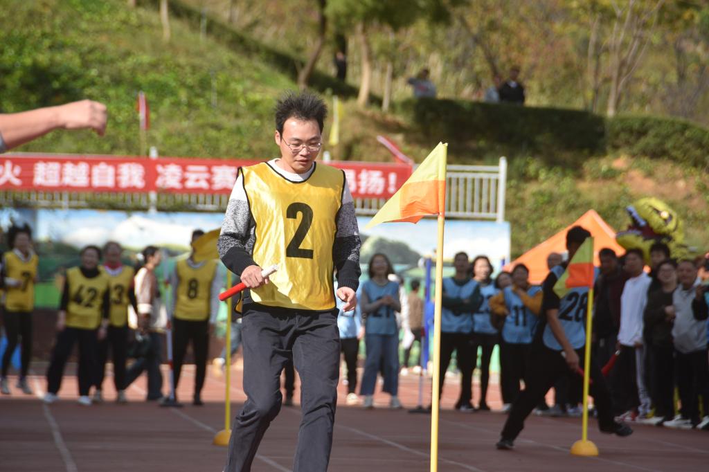 老师们也毫不逊色。在趣味运动项目中,平日里站在讲台上严肃认真的他们,此刻展现出了童真可爱的一面。有的老师参加跳绳比赛,轻盈的跳跃仿佛找回了童年的欢乐时光;有的参与接力跑项目,专注的神情和稳健的步伐让人忍俊不禁又心生敬佩。他们用自己的行动向同学们传递着运动的快乐和积极生活的态度,即使偶尔失误,也会相视而笑,那份豁达与乐观感染着在场的每一个人。