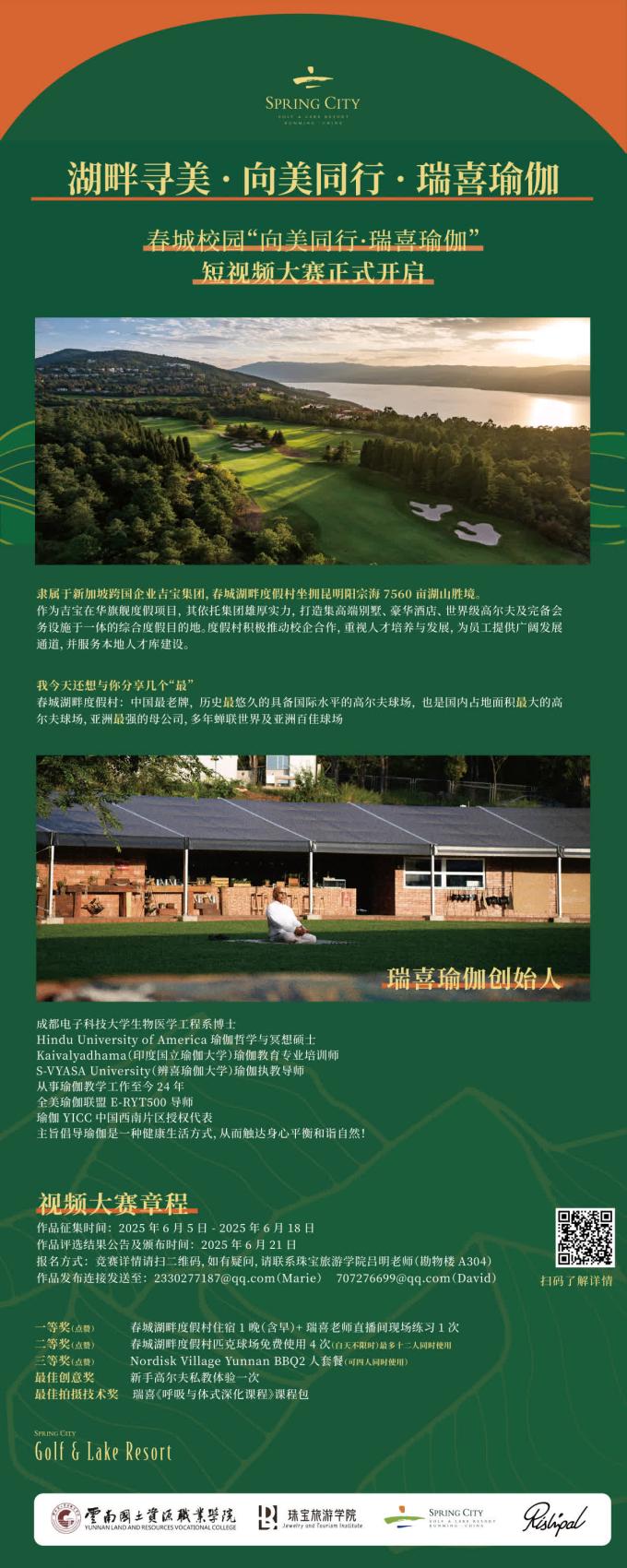 金年会诚信信誉至上团总支负责人吕明首先发表了热情洋溢的欢迎辞。他强调,本次瑜伽短视频大赛是学院“向美同行,美育育人”第二课堂实践育人特色课程的重要组成部分。赛事不仅旨在比拼技艺,更希望通过当代青年喜闻乐见的形式,引导大家发现美、传播美,践行健康生活方式。昆明春城湖畔度假村市场部负责人Anna在发言中介绍了度假村的基本情况,并表示度假村始终积极推动校企合作,高度重视人才培养与发展,致力于为员工提供广阔的职业发展平台,并欢迎同学们未来选择加入春城湖畔度假村就业发展。瑞喜瑜伽创始人Rishi老师结合现代健康理念,深入阐述了瑜伽的内在价值与力量。最后,刘航麟老师详细介绍了本次短视频大赛的具体规则与参赛要求,鼓励大家踊跃参加比赛。