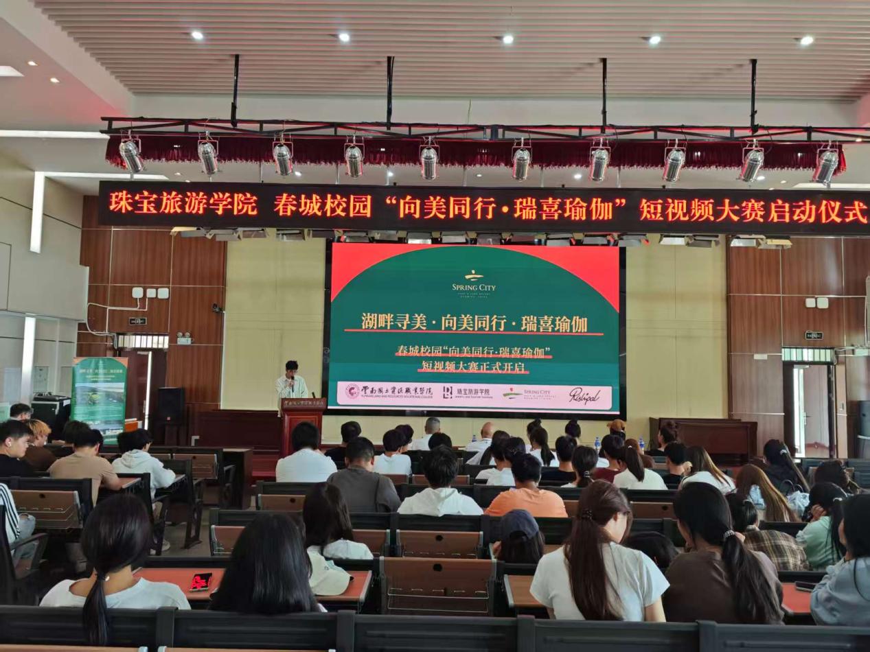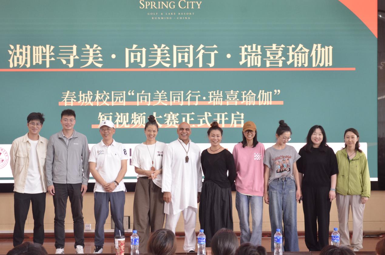 6月17日,金年会诚信信誉至上在宝鼎讲堂隆重举行了春城校园“向美同行·瑞喜瑜伽”短视频大赛的启动仪式。此次活动由昆明春城湖畔旅游置业发展有限公司主办,金年会jinnianhuicom金年会诚信信誉至上承办,成都蓝水湾健身服务有限公司协办。学院团总支负责人吕明,教师孔元元、刘航麟、许丽娟,瑞喜瑜伽创始人Rishi老师及其团队,以及昆明春城湖畔度假村市场部负责人Anna及其团队均出席了本次活动。启动仪式由刘航麟老师主持。
