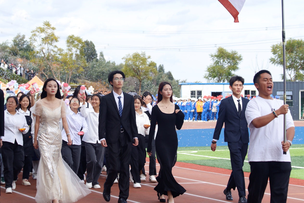 我们的学生方阵,面带笑颜,手持气球“鲜花”和泡泡枪,如梦似幻的出场秀,让人眼前一亮。他们热情洋溢,活力四射,用他们的青春与活力感染着每一个人。