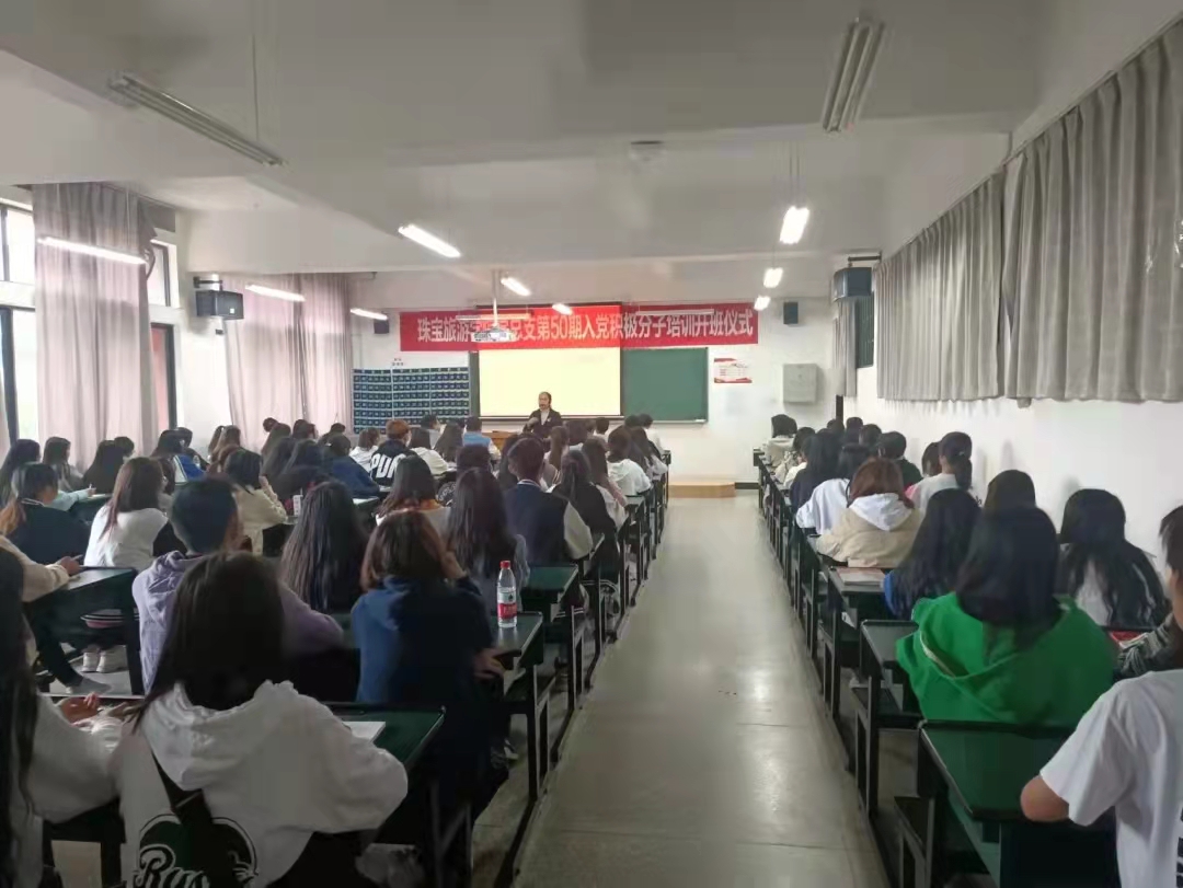 开班仪式分为三个阶段,大会第一项:全体起立,奏唱国歌。本次开班仪式在高昂的歌声中拉开帷幕。第二项,王蕊老师进行了会前动员讲话并宣读了本届入党积极分子培训班的课程安排与考核方式,做了严格的纪律要求。第三项,张颖书记致辞,她主要强调三点:“第一,机会难得,值得珍惜。希望大家珍惜机会,认真对待这次培训,不辜负组织的信任和精心培养。第二,讲求方法,学有所成。把学习所得内化于心、外化于行,把他律变为自律。第三,尊师守纪,树立形象。集中培训不是一门选修课,而是一门必修课;不是走一次形式,而是要接受一次考验;不是一次单纯的知识培训,而是一次提前进行的党性锻炼。”她希望此批入党积极分子以实际行动争取早日成为一名合格的共产党员,为党的事业贡献自己的力量。