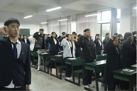 最后,沙双粉老师介绍了团课安排,明确青马班的主要指导老师和班委,还带领青马班的全体成员奏唱《中共青团团歌》并重温入团誓词。在庄严的誓词声中,青马工程团课培训班开班仪式圆满结束。