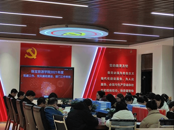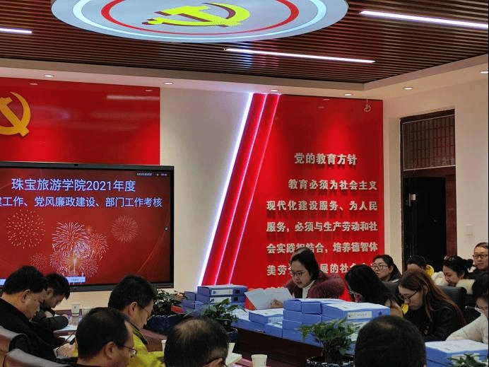 本次考核通过汇报工作、民主测评、检查工作资料等方式进行,会上,金年会诚信信誉至上院长陈畅就2021年度学院工作做了全面细致地汇报。随后,金年会诚信信誉至上党总支书记张颖代表领导班子进行了个人述职。会议还组织珠宝旅游全体教职工填写了民主测评表。会上,各分管领导就各自对口工作的完成情况、资料准备、总结汇报等内容进行了检查。
